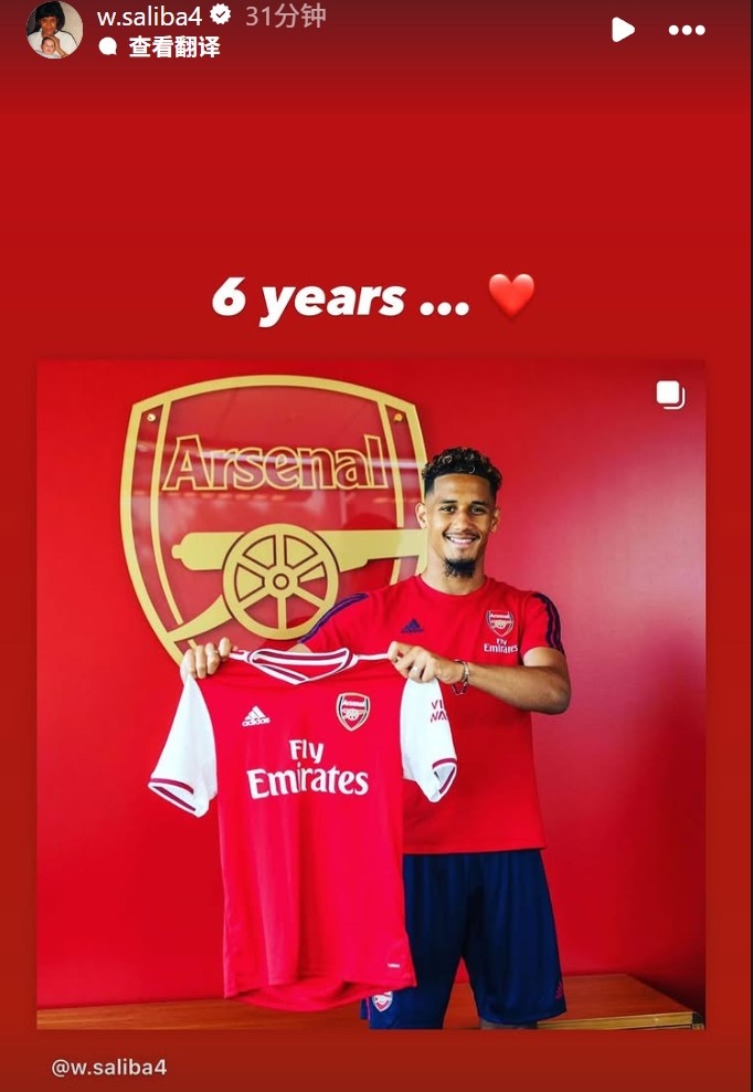 已成后防大腿!萨利巴社媒晒加盟阿森纳时亮相照:6年前……❤️