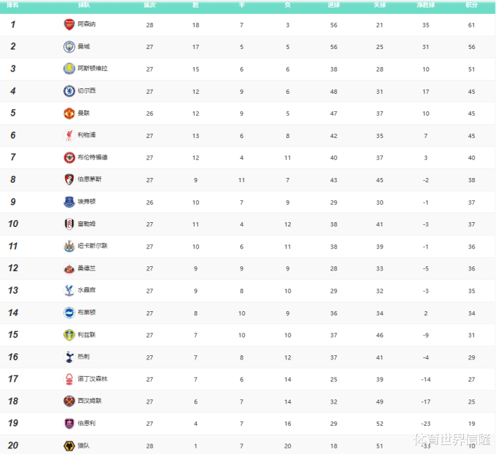 5、英超:阿森纳5分领跑,曼城紧随其后仍有悬念