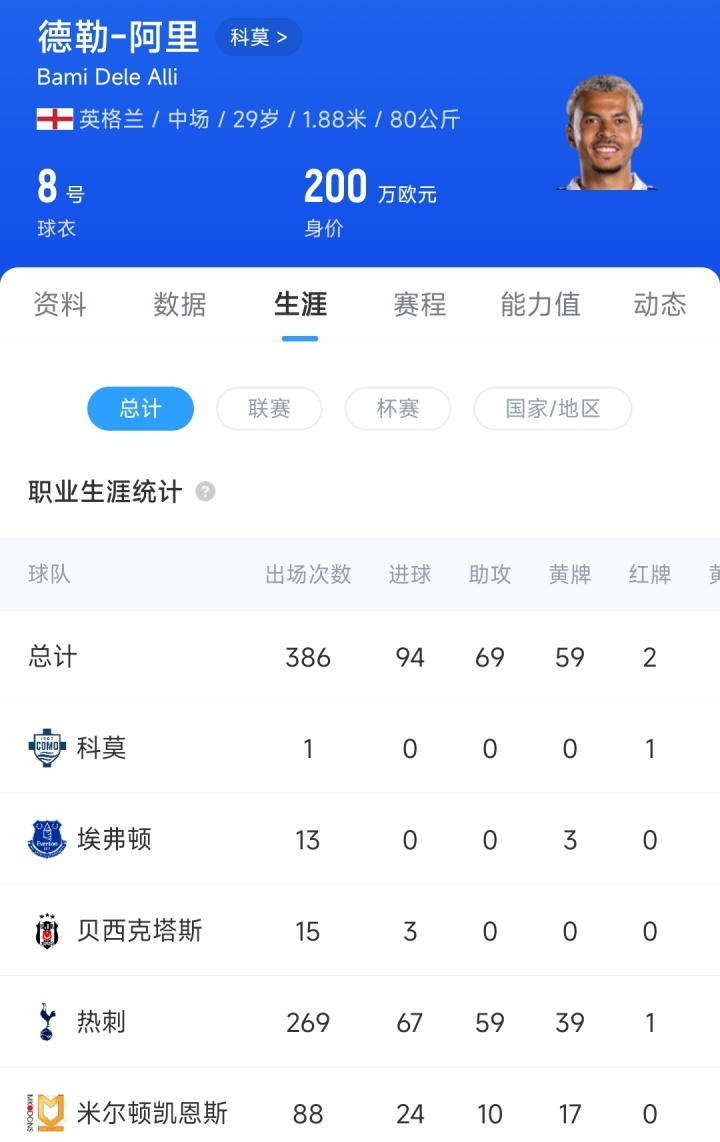 08月03日讯 意大利媒体《米兰体育报》音问,德勒-阿里不在科莫的新赛季计较中,他正在厚爱接洽退役的领受。