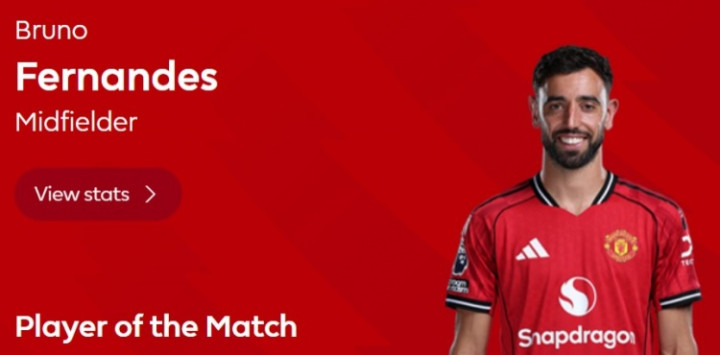 破门+造乌龙, 英超官方: B费当选曼联2-2伯恩茅斯全场最佳球员