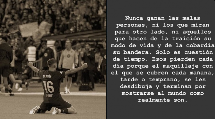 什么情况👀巴萨中场费尔明发社媒称坏东谈主永恒不会得胜,随后删除