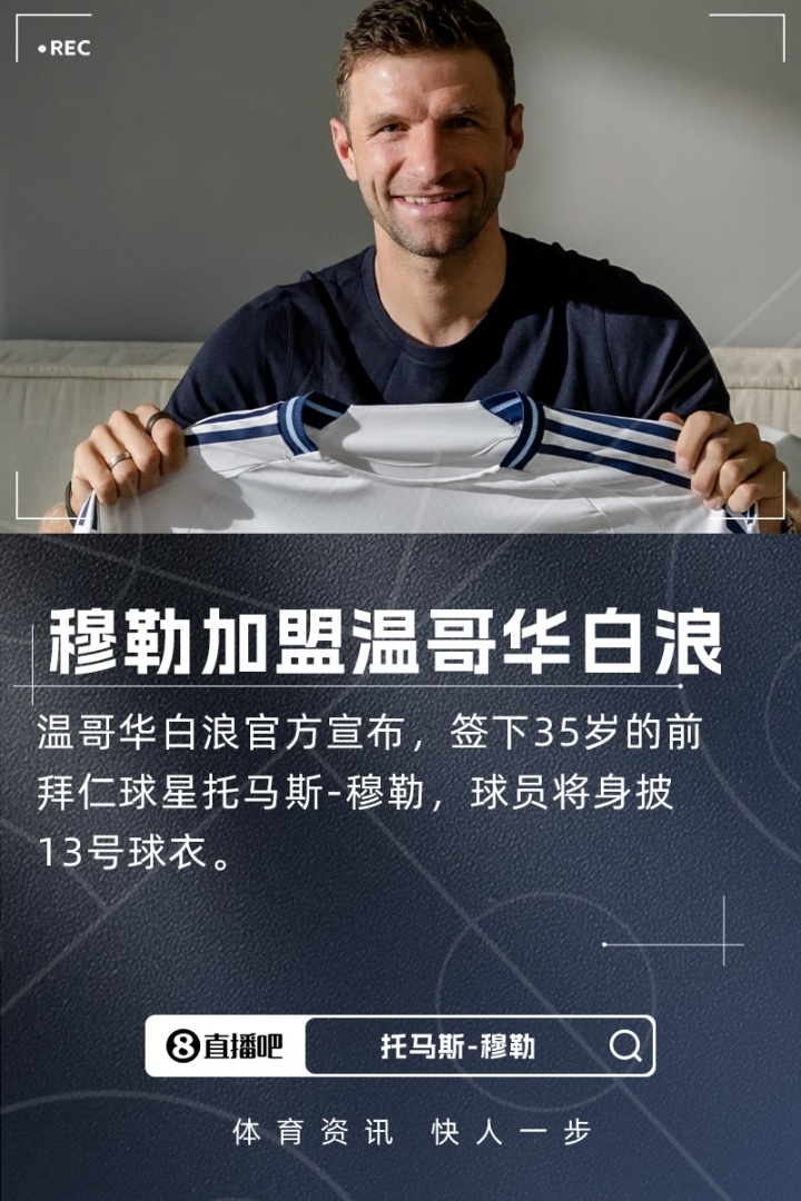 温哥华白浪官方晓示,签下35岁的前拜仁球星穆勒,他将身披13号球衣。