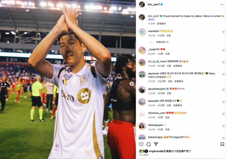 8月10日讯 在北京时代今天上昼进行的好意思职联比赛中,孙兴慜替补出场演出洛杉矶FC首秀,制造一粒点球,最终洛杉矶FC客场2-2战平芝加哥火焰,赛后孙兴慜更新社媒抒发了首秀的忻悦,以及接下来的期待。