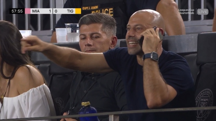 8月21日讯 北好意思定约杯1/4决赛,迈阿密海外2-1打败老虎大学,晋级半决赛。迈阿密海外主帅马斯切拉诺上半场法规后抗议裁判,被红牌罚下,但他通过手机开辟球队。
