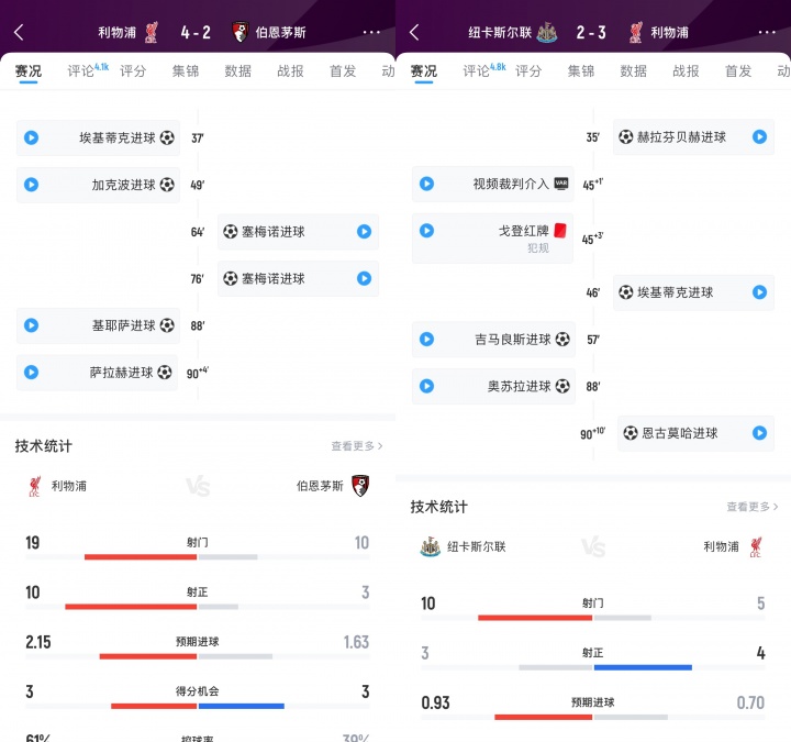 英超揭幕战,利物浦主场4-2伯恩茅斯,赤军2球跨越后连丢2球,最终基耶萨88分钟破门、萨拉赫94分钟破门带走告捷。