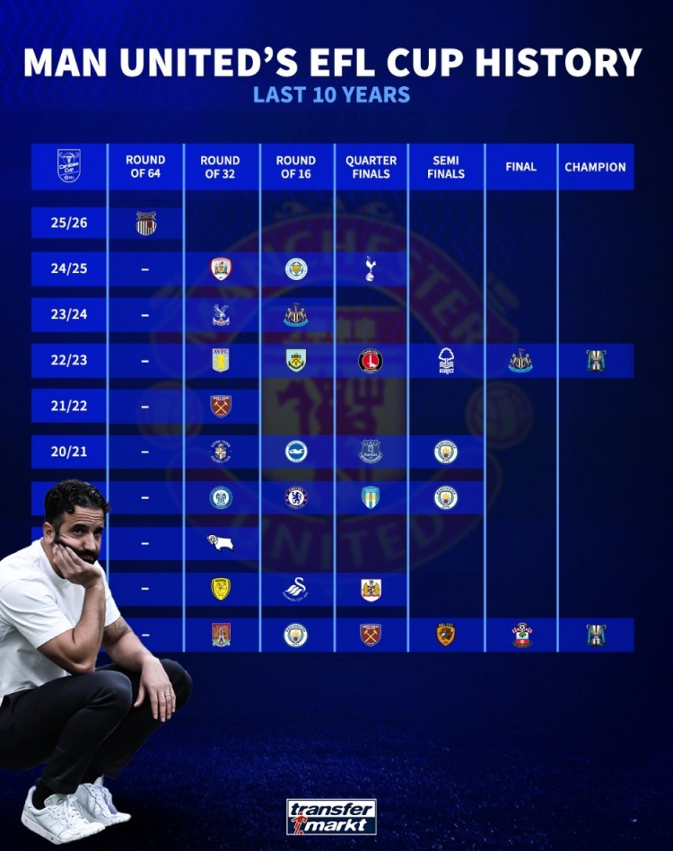 德转清点曼联近10赛季联赛杯收获:两度夺冠,本赛季第2轮被淘汰