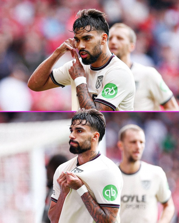 进球后,帕奎塔以一个相配的神色庆祝:先作念出接电话的手脚,然后把“电话”扔掉,接着亲吻了西汉姆联的队徽。