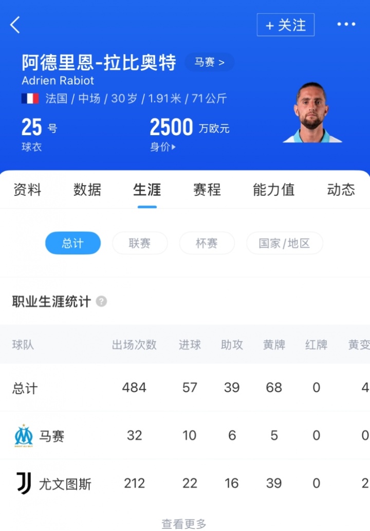 拉比奥特现年30岁,上赛季为马赛出场31场,孝顺10球5助,现身价2500万欧元。在赛季初,拉比奥特因为与队友打破,被马赛挂牌出售。