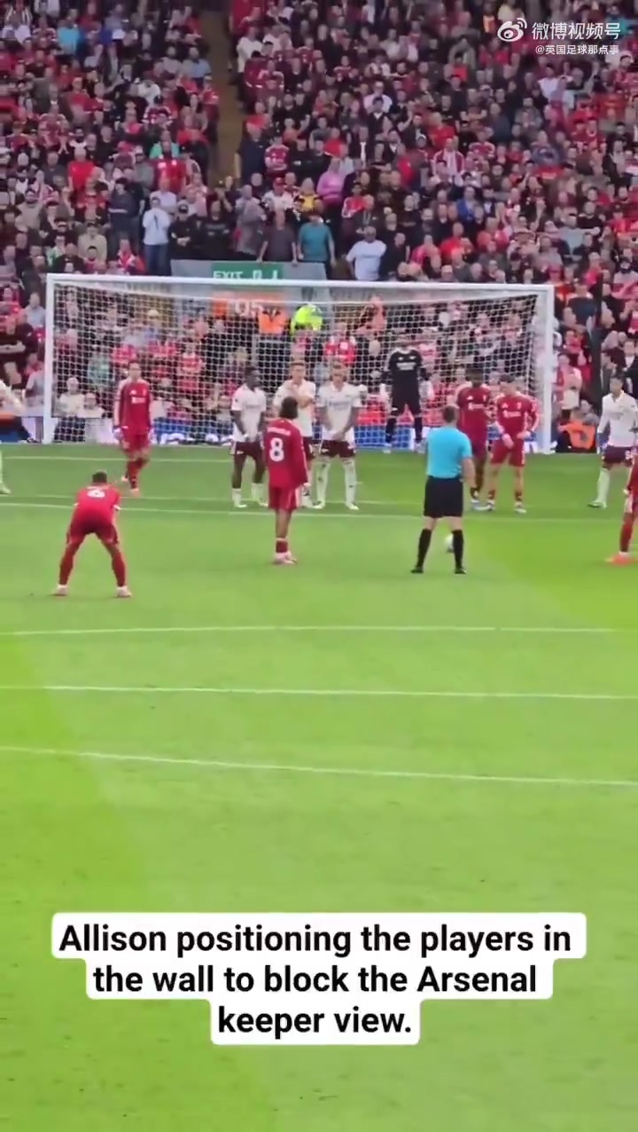 在索博打入制胜纵情球前,阿利森特意过来酌量维尔茨和加克波在排东说念主墙时挡住拉亚视野。