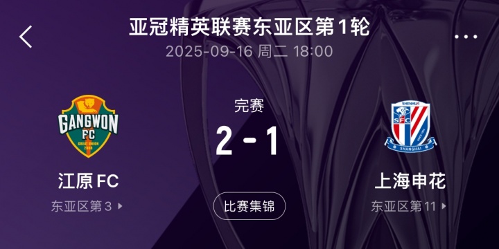昨天的比赛中,申花通常是在先进一球的情况下遭江原连进两球逆转。