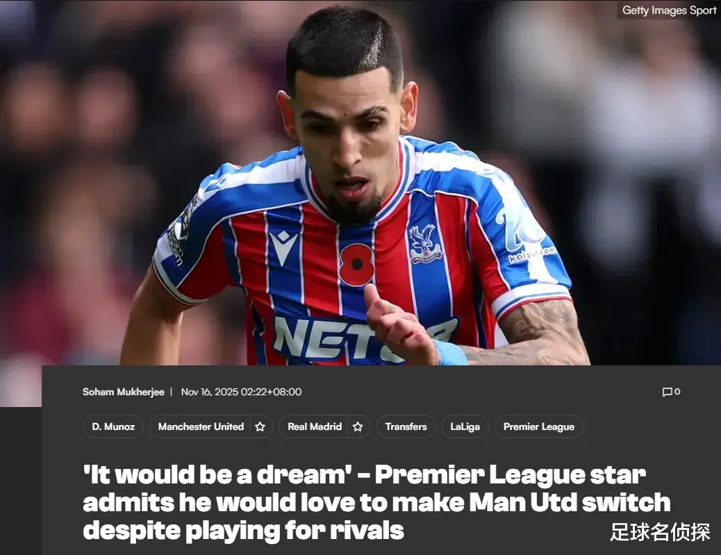水晶宫球星丹尼尔-穆尼奥斯剿袭哥伦比亚阿斯报采访时承认,他但愿加盟曼联等权门,这名29岁的边后卫仍是引起了巴萨、巴黎等俱乐部的风趣。