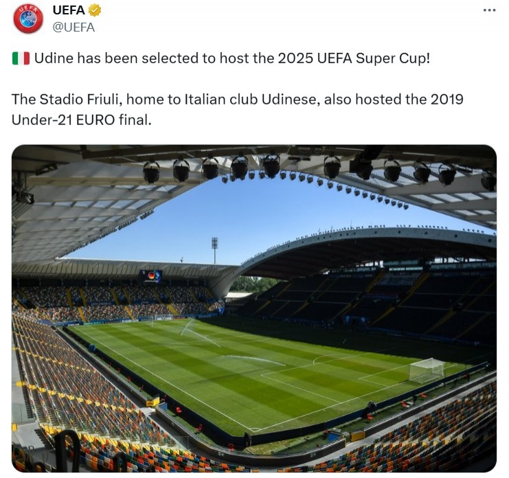 8月13日讯 巴黎圣日耳曼将在今晚的欧洲超等杯对阵热刺,比赛在乌迪内斯Bluenergy成见场举行,The Athletic也对这座球场进行了先容。