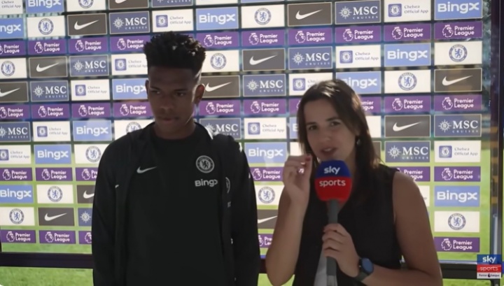 08月18日讯 英超首轮,切尔西0-0战平水晶宫,无缘开门红。赛后,切尔西新援18岁的埃斯特旺遴选了太空体育的场边采访。