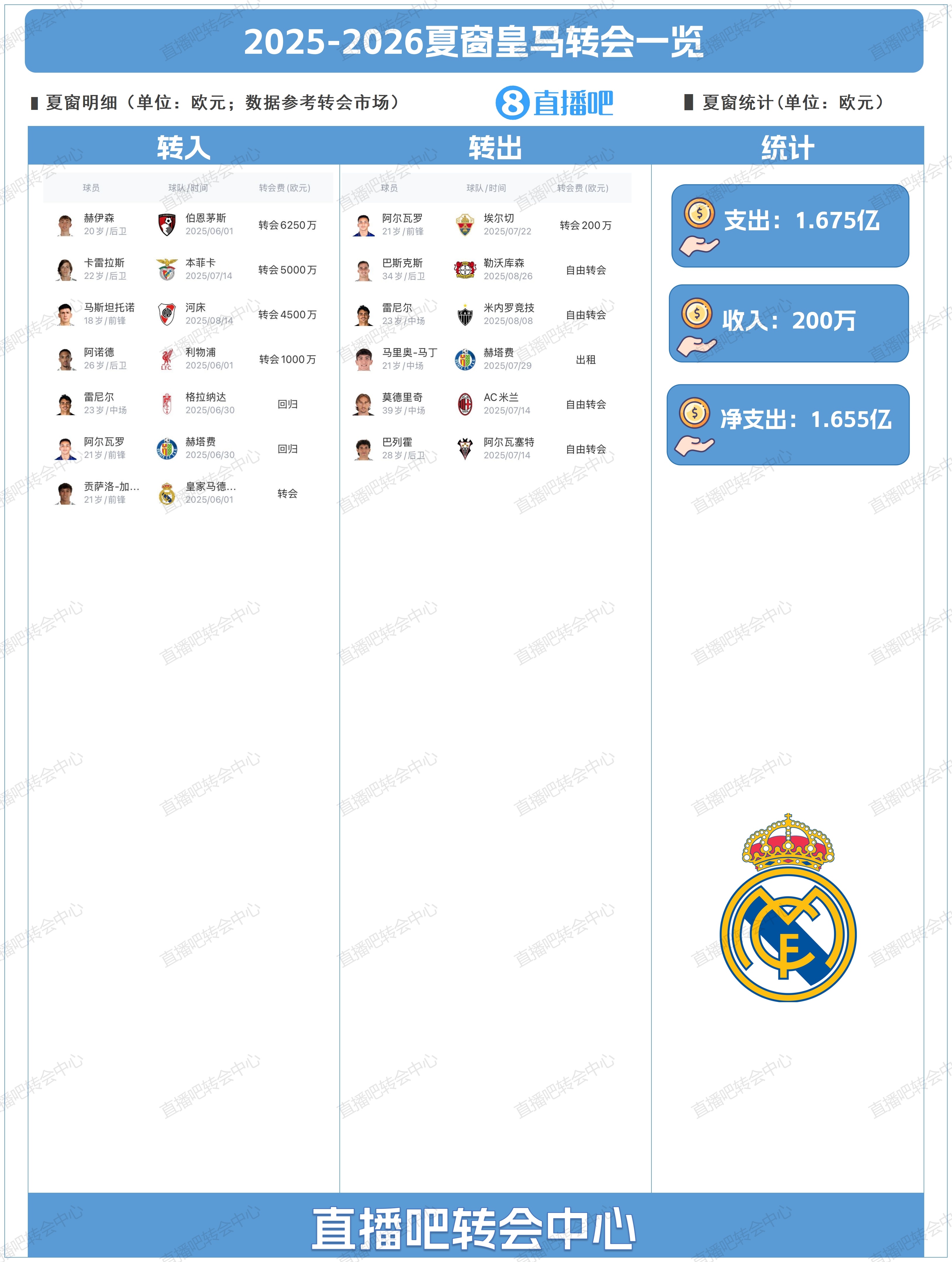 为吧友们追思了皇马今夏的转会操作,吧友们能打几分?