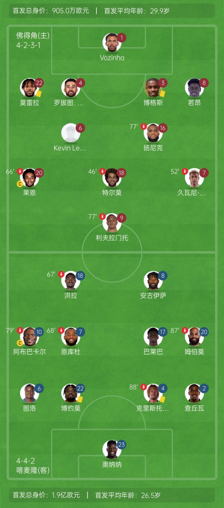 本场比赛,喀麦隆的首发11东谈主身价高达1.9亿欧,是敌手佛得角的近21倍。