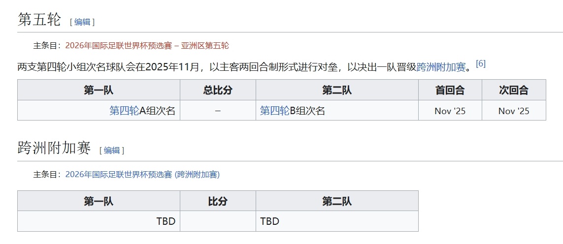 寰球杯跨洲附加赛将于2026年3月举行,来自中北好意思及加勒比海的两支球队以及亚足联、非洲足联、南好意思足联、大洋洲足联各一支球队,一共6支球队将争夺2026年寰球杯终末两个参赛限额。