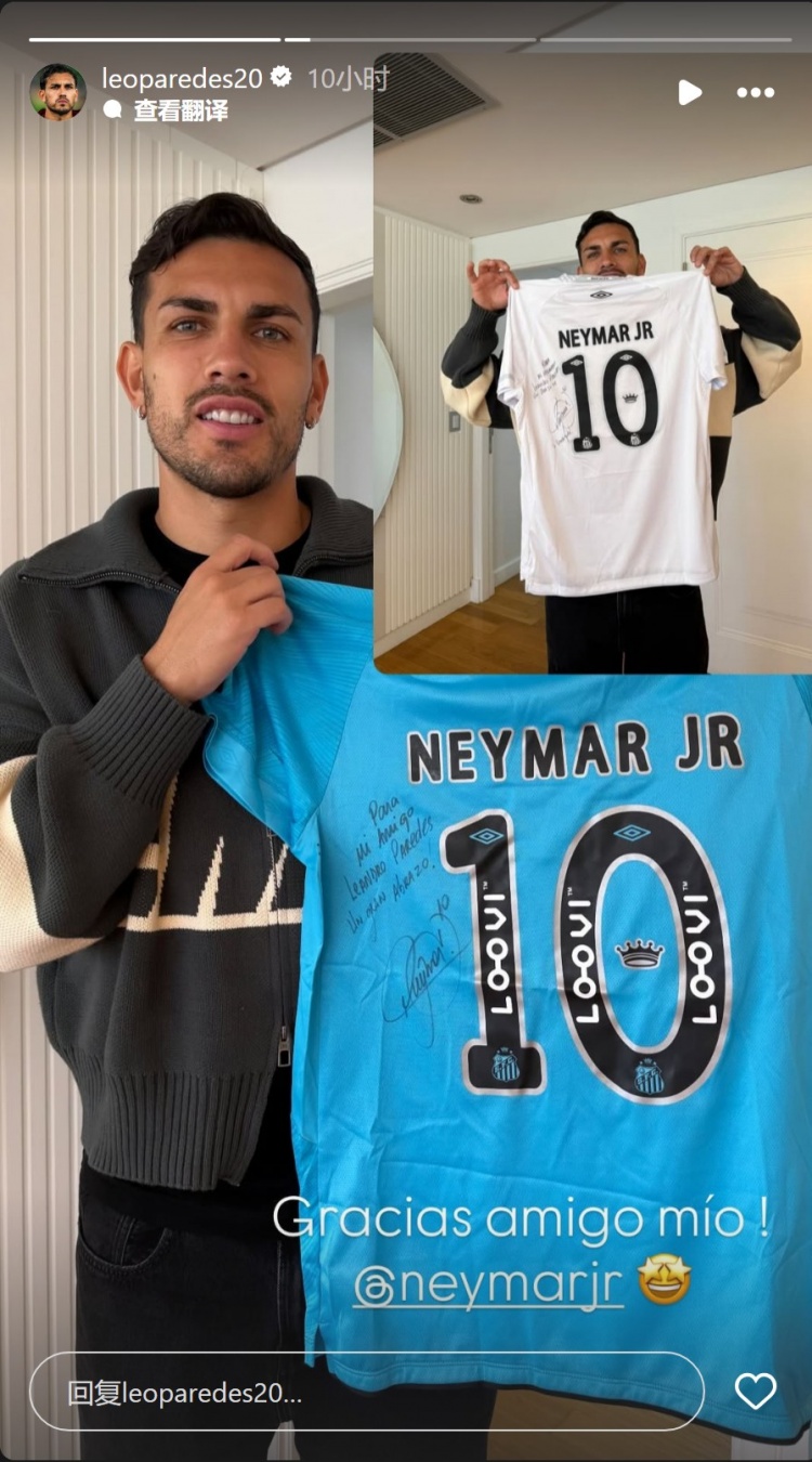 🤝内马尔、帕雷德斯互赠球衣,社媒晒照暗示感谢