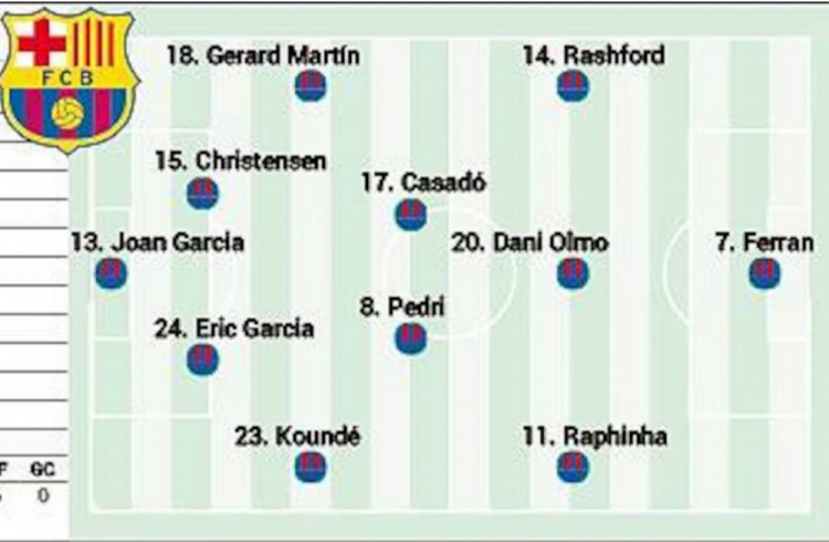 阿斯展望巴萨首发:奥尔莫在列,拉什福德、费兰、拉菲尼亚三叉戟