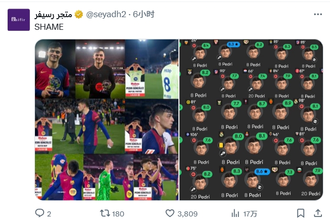 球迷晒出佩德里推崇、媒体评分书册图并写谈:按捺
