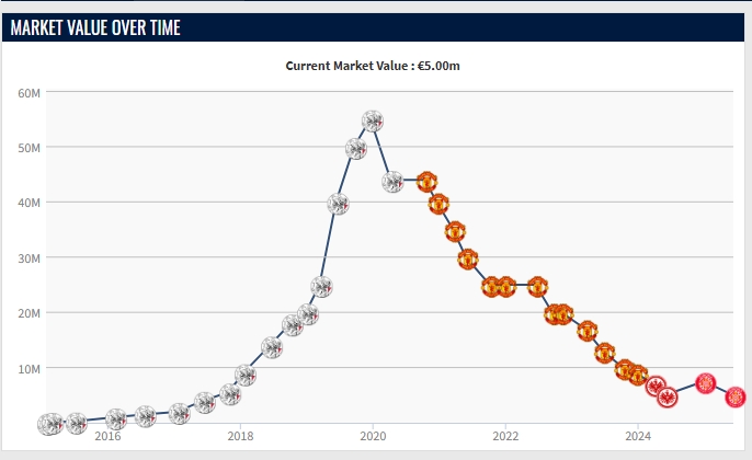 2018-19赛季,他在阿贾克斯57次出场,打进17球并助攻13次,身价飙升至5500万欧元,并入选了2019年金球奖30东说念主候选名单。