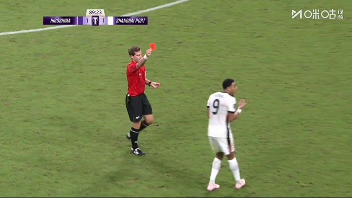 亚冠精英联赛东亚区第2轮,广岛三箭vs上海海港第90分钟,海港先锋古斯塔沃拼抢中犯规,主裁判审定直红将其罚下,VAR核实后督察了原判。