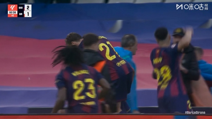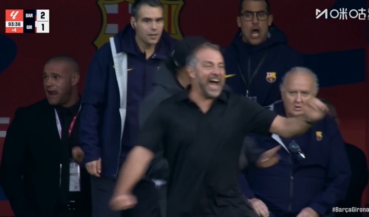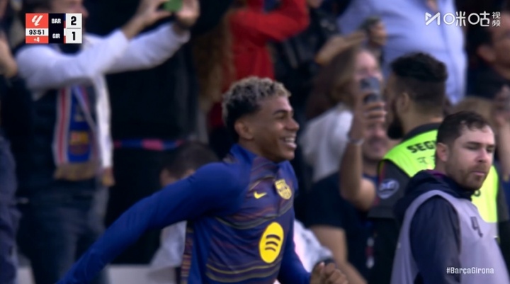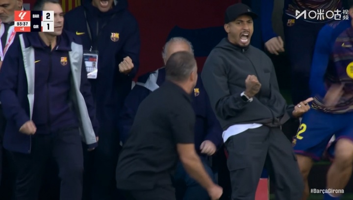 主帅弗里克、本场伤缺的拉菲尼亚在场边挥拳吼怒庆祝,此前替补下场的亚马尔也大笑着加入了庆祝的东说念主群。