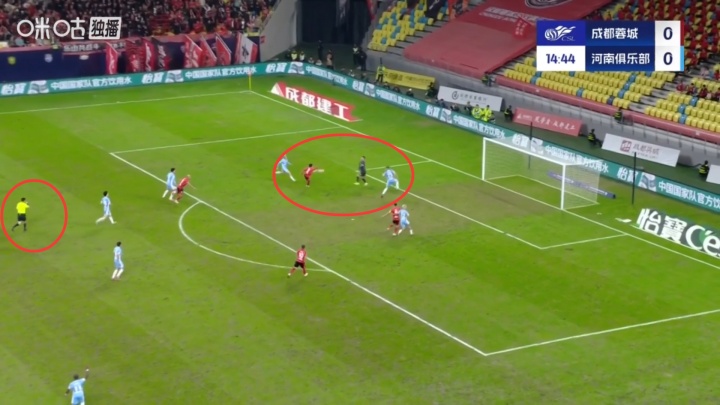 中超第29轮,成皆蓉城主场1-2遭河南逆转。比赛第15分钟,蓉城曾打进一球,但裁判认定河南手球在先,判给蓉城定位球,进球无效。这次判罚激发争议。