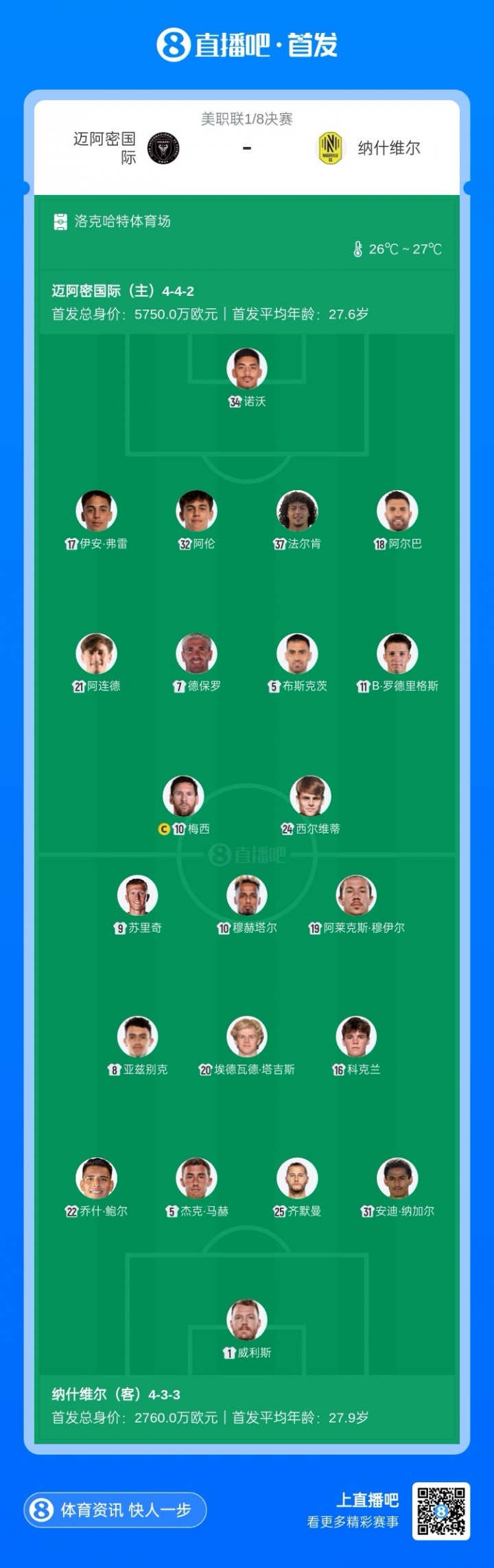 季后赛-迈阿密vs纳什维尔首发:梅西领衔,苏牙停赛西尔维蒂先发