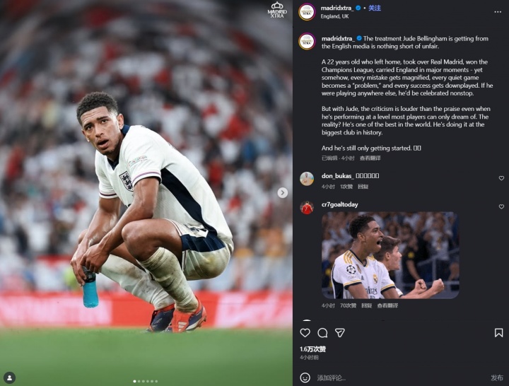 11月18日讯 此前英格兰2-0打败阿尔巴尼亚,贝林厄姆第84分钟被换下,赛后媒体热议其进展以及下场时的起火激情。皇马关系博主MadridXtra在社媒发文点评。本色如下。