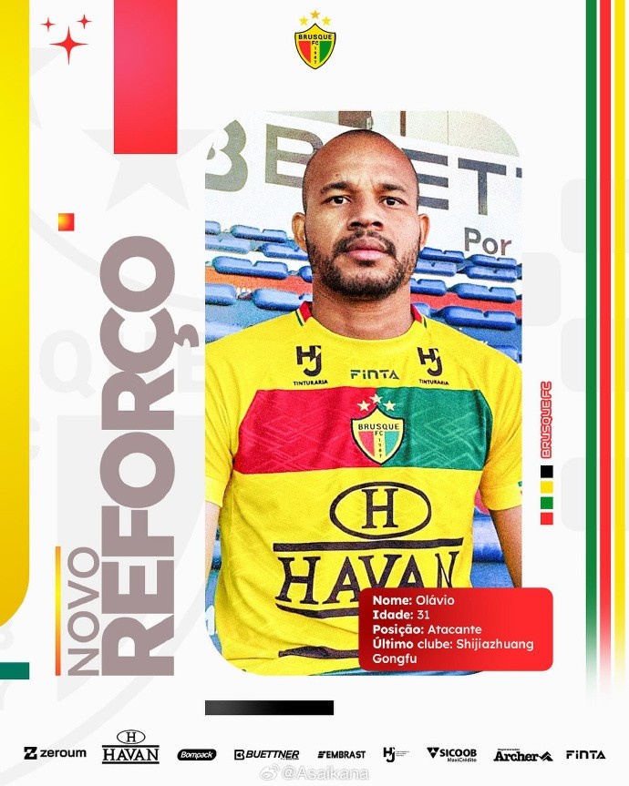 石家庄功夫外助奥拉维奥(Olávio)复返巴西,加盟巴丙联赛球队布鲁斯克(Brusque Futebol Clube)。